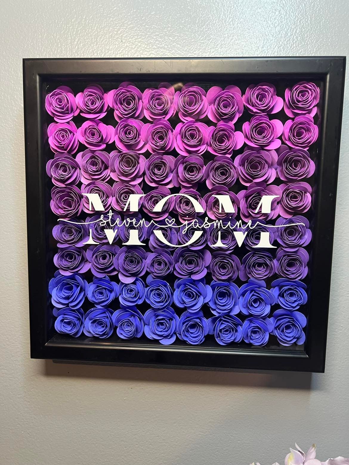 🌺Personalized Shadow Box Valentine's Day Gift Mother's Day Gift Customized Gift Flower Frame Shades of Purple Mom Purple Roses Shadow Box