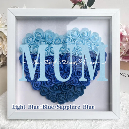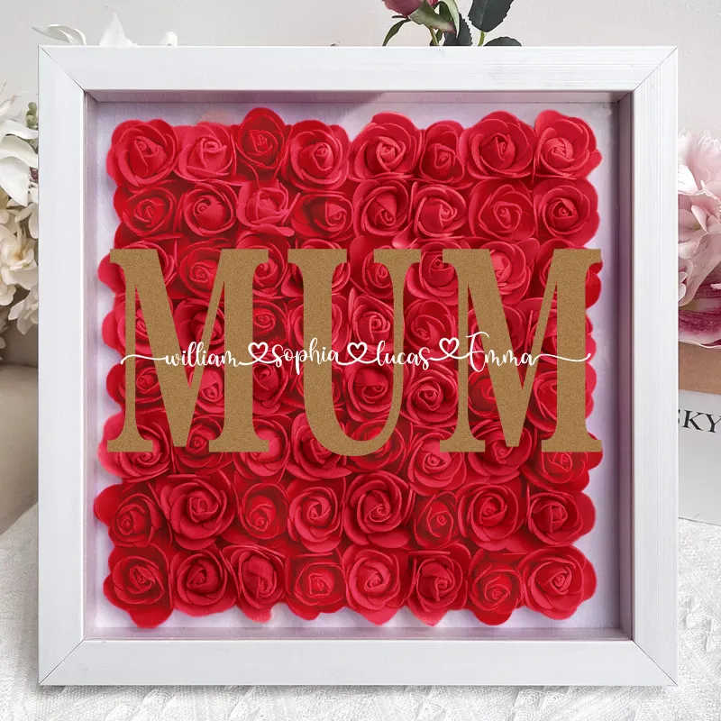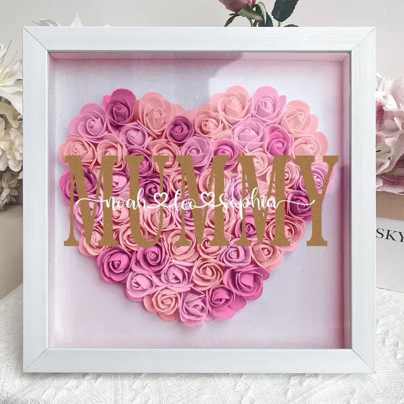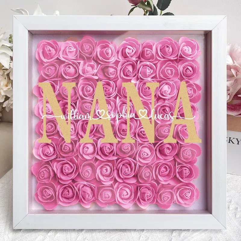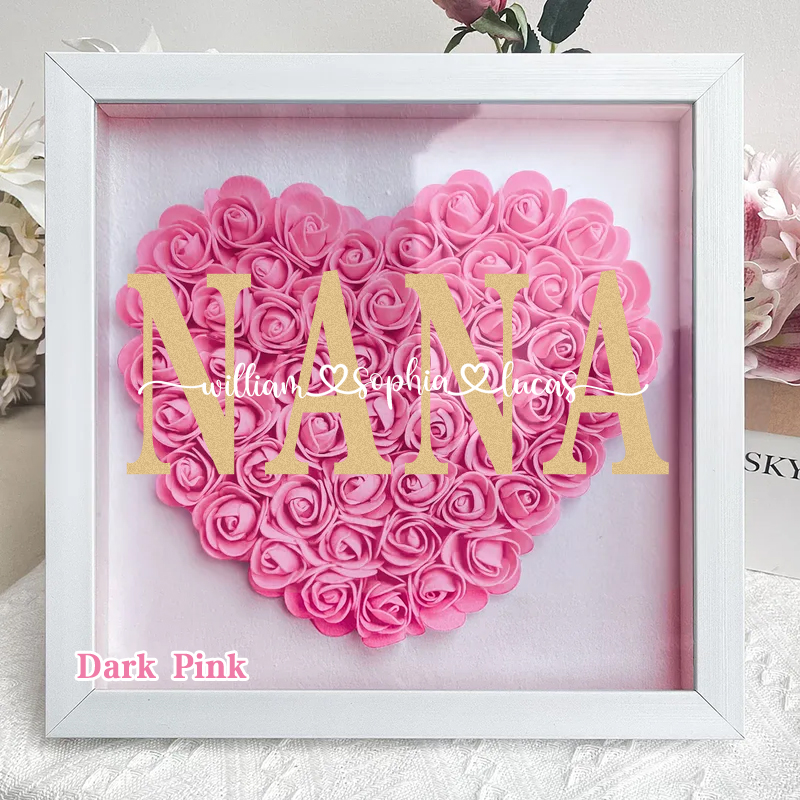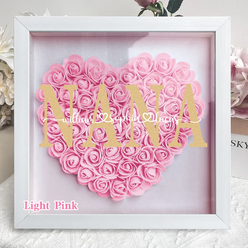 Custom Name Flower Heart Shadow Box, Custom Rose Frame for Mum, Gift for Mum and Grandma Nana